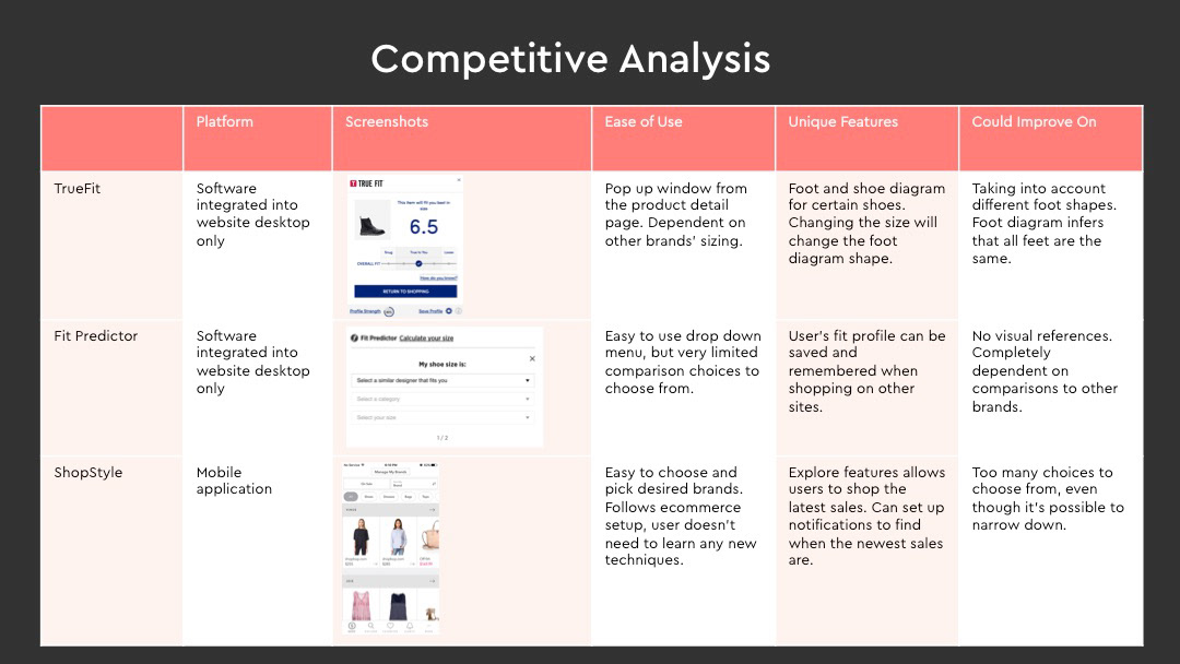 It allows shoppers to discover great fitting shoes without having to try them on. Women need a way to find shoes that fit them perfectly because they want to feel comfortable and stylish in their busy, daily lives.